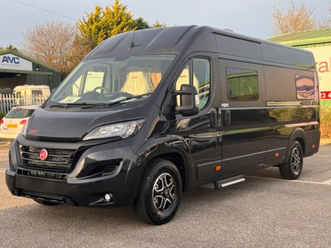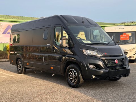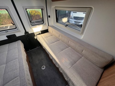 Storage space throughout this campervan is good, with plenty of overhead lockers as well as a wardrobe next to the washroom, and space beneath the sofas. Other features include an electrically operated entrance step, swivelling cab seats, a number of sockets and cruise control.
