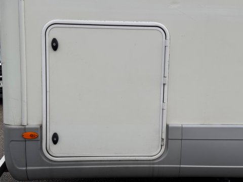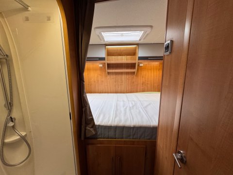 A key selling point is the large rear "sports garage" beneath the fixed bed, accessible from both sides, which can store items like a scooter or bikes, or any camping equipment!