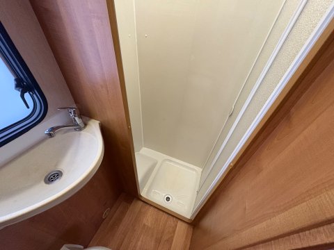 The washroom includes an electric flush cassette toilet, seperate shower and a wash basin. It really makes the most of the space in this fabulous layout of a Tribute motorhome.