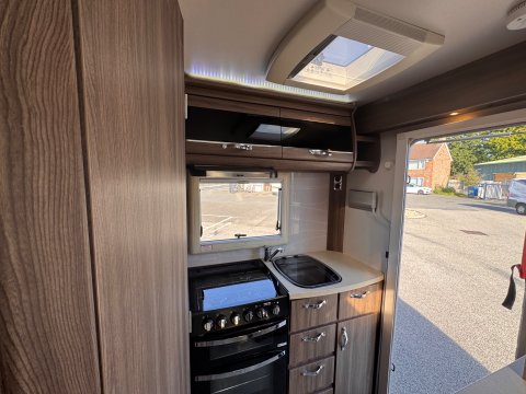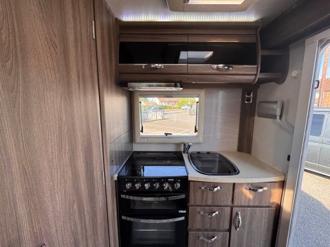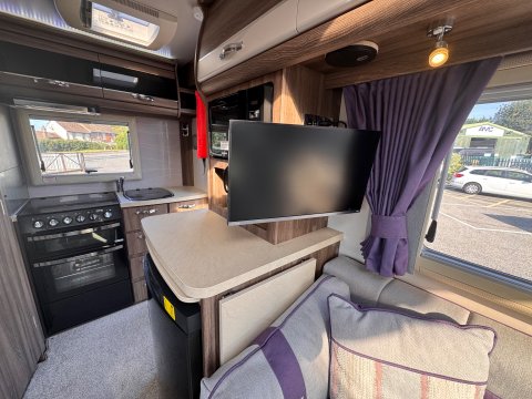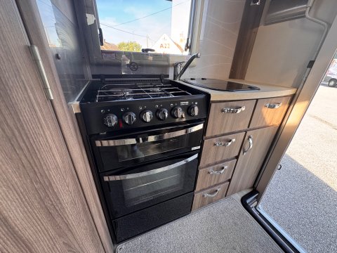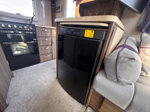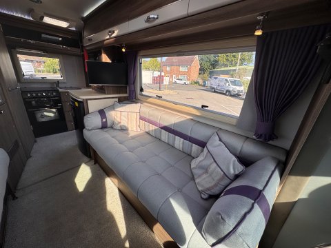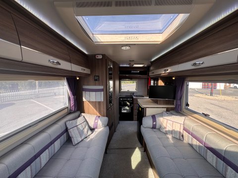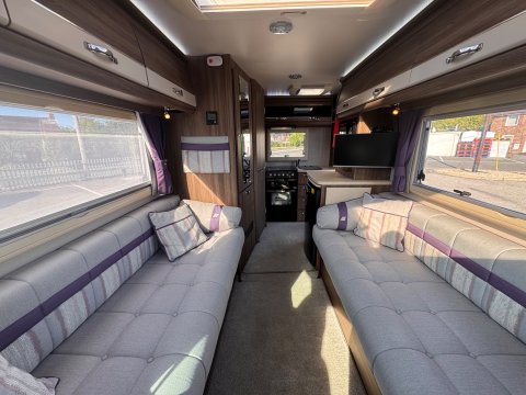 The layout is a traditional 2-berth design, featuring a large front lounge, which maximises the space, and an end kitchen/washroom.