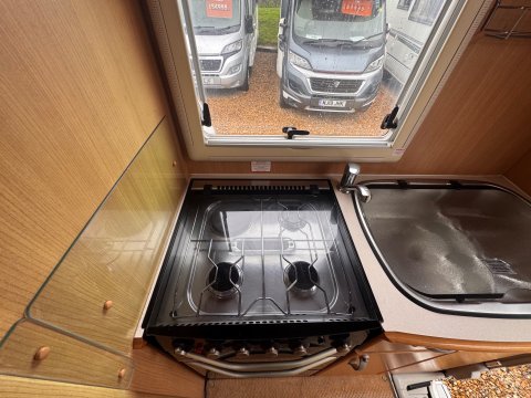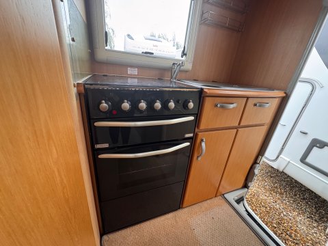The rear end kitchen has a 3-burner gas hob + 1 electric hot plate, oven, grill, 3-way fridge/freezer, sink, drainer and ample storage.