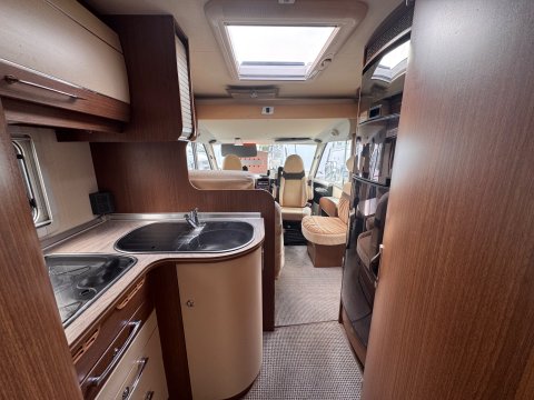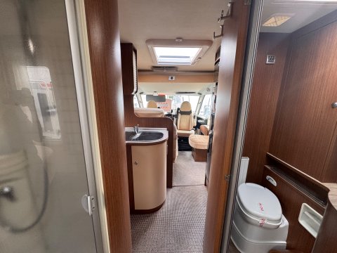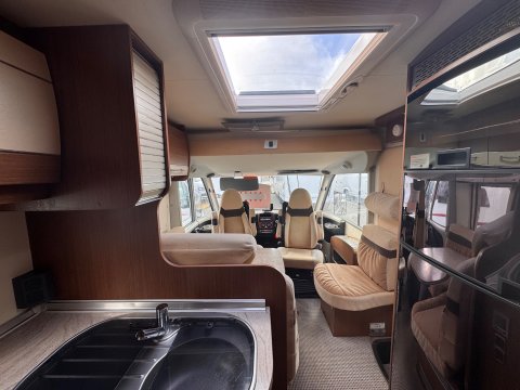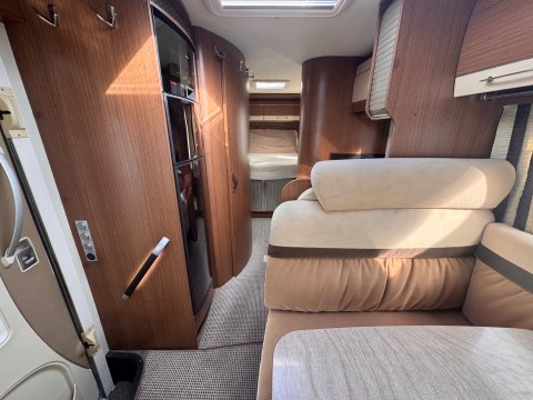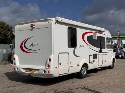 The 2013 Burstner Aviano i727 is an A-class, 4 berth motorhome built on a Fiat Ducato chassis, offering a popular rear island bed layout.
