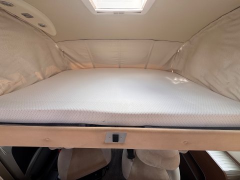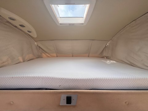 In addition to the rear island double bed, a second comfortable double bed pulls down easily over the cab area, accommodating a total of four people.