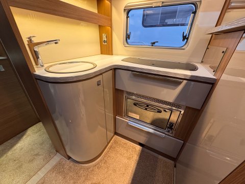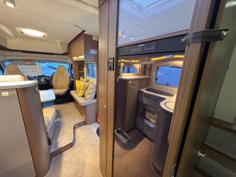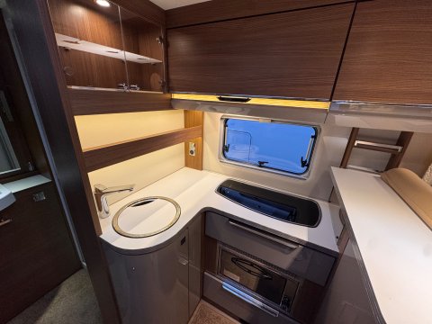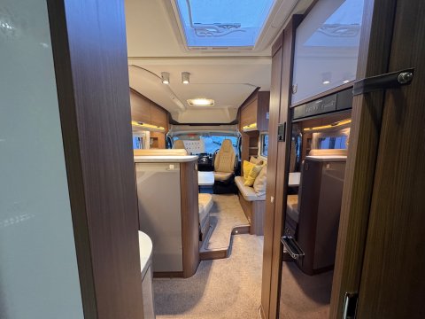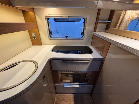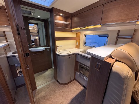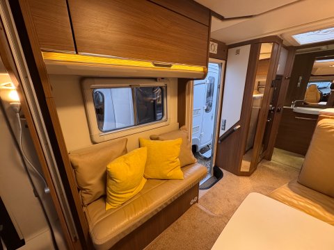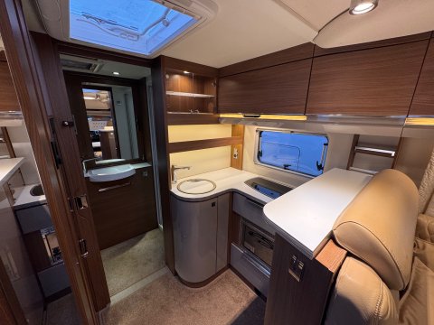 The 2016 Burstner Ixeo it 680 G is a luxury 4 berth, low-profile motorhome known for introducing a groundbreaking longitudinal drop-down bed. This design allows the bed to stow flush into the ceiling, maintaining full headroom during the day while providing easy access at night.