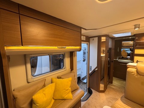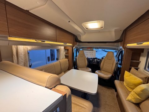 A spacious area with L-shaped seating and a side sofa that can comfortably seat up to eight people. This lounge also provides 2 extra belted seats for travelling making it an ideal family-friendly motorhome.