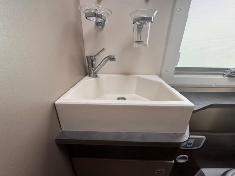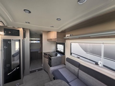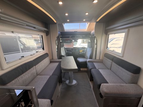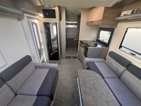 This smart, innovative feature consists of two inward-facing side sofas in the front lounge area. While static, these benches conceal two forward-facing, belted travel seats for passengers during transit.