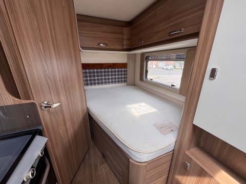 The main bedroom has a fixed French double bed with a comfortable mattress. The front dinette converts into a second double bed, ideal for children.