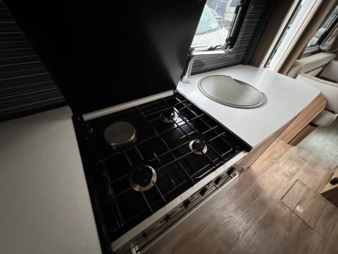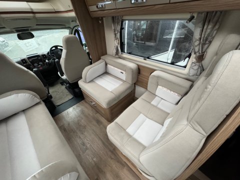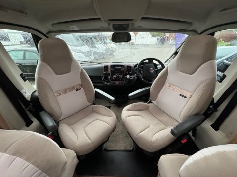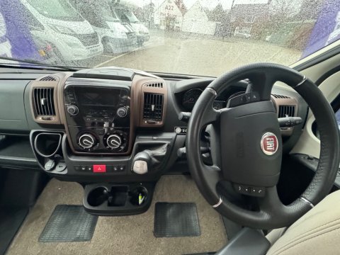 Take a look at this huge 8.5m long Swift KonTiki 669. A 4 berth with 4 belted travel seats, perfect for a family! Starting at the front end of this stunning motorhome, you have the lounge/dinette area. This can be converted into an easy-to-build double bed when night time approaches. Also including the extra belts for travelling. Moving further into the vehicle you will com across the kitchen area. The kitchen in this vehicle comes fully equipped with a 3-burner gas hob, electric hotplate, oven, grill, 3-way fridge/freezer, microwave and sink. Not forgetting to mention the incredible ammount of cupboards for storage purposes and worktop space for prepping and serving your meals. The cupboards continue throughout the entire vehicle meaning there really is no need to worry about storage! Located on the left of this Swift KonTiki 669 is the washroom. This includes an electric flush cassette toilet, shower and wash basin. Finally, at the rear of this beautiful motorhome is the fixed island double bed. A great space with room either side to walk around. The great part about this rear bedroom is that it can be shut off from the rest of the motorhome! What a great, family friendly motorhome this Swift KonTiki 669 is!