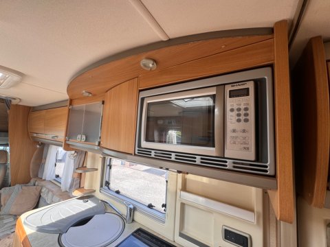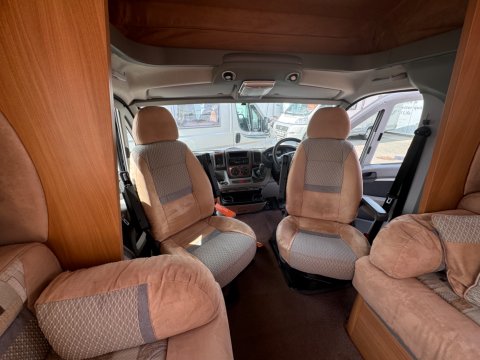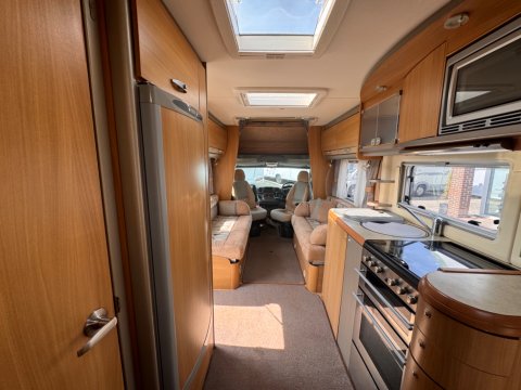 The 2007 Swift Kon-tiki 665P is a spacious, 6 berth motorhome designed for families and large groups. It features a practical layout with a fixed rear french double bed and a large over-cab double bed, along with a well-equipped kitchen and a washroom.